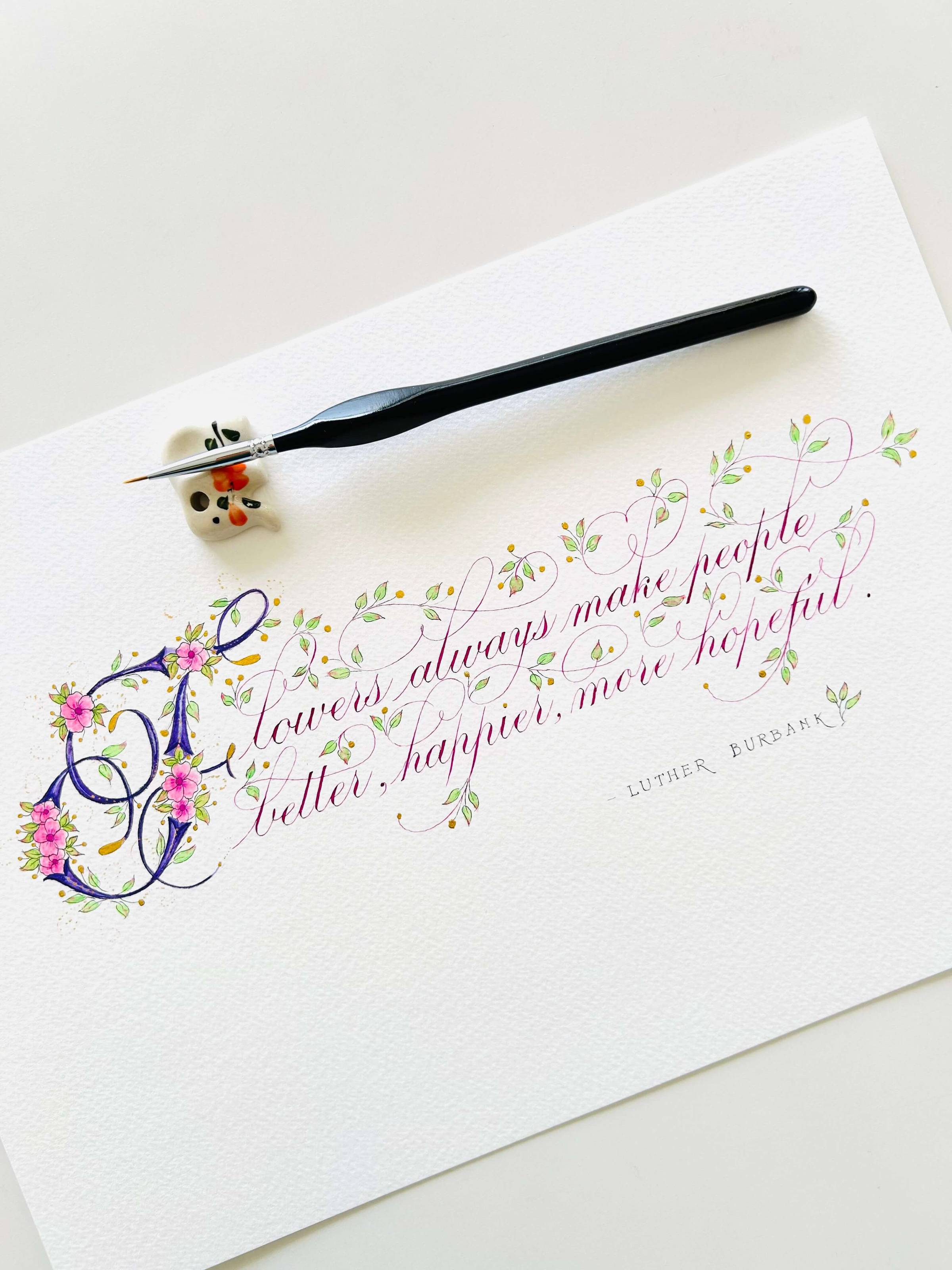 Do you think there's such a thing as "fancy" calligraphy? Isn't ALL calligraphy fancy?! There are some examples of writing SO ornate... SO embellished... And SO impressive that the word fancy feels necessary. Like this historical example: But not all examples of old. A few are even from community members here 🙂 Like this example from Tsung-Yi Nina Chin: Or this example from Shweta Tembre: We've dug through the archives (both the literal archives and the Loveleigh Loops archives!) to pull examples of fancy calligraphy in: